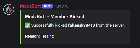 Sick and tired of a server member not following rules? Just kick them! You can also enter a custom reason for the kick for other moderators to see.