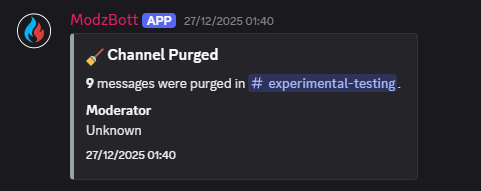 *Not all message delete logs will contain message content. This is a Discord limitation and may be able to work on a fix for this.